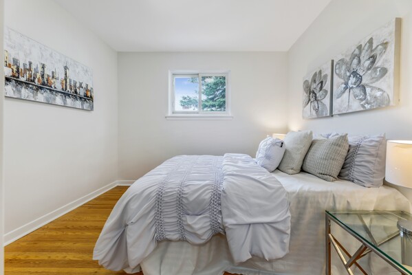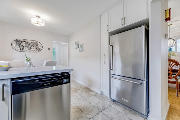 This home offers versatility and convenience with its 2 renovated kitchens and 3 updated bathrooms, ensuring ample space and privacy for all family members. The separate side door entrance leads to a fully finished basement, complete with its own modern kitchen and a luxurious 3-piece bathroom featuring a stylish glass shower. This setup is perfect for in-laws, guests, or as a potential rental opportunity.