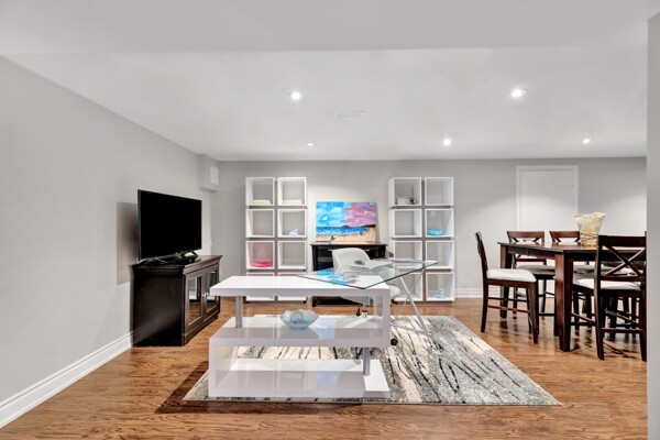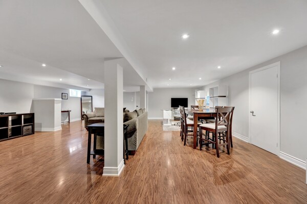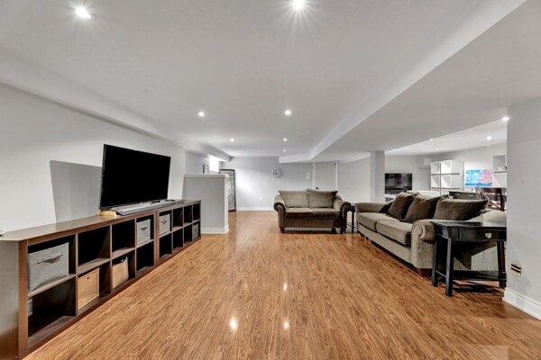 Extras:Finished Basement includes Huge Rec Room, 2 additional bedrooms, Huge Laundry/Storage Room - Future 3rd Bath Potential! Mature Trees & Dble Car Garage & Huge Driveway fits 8 Cars. ***TV Outlet located on wall behind Fireplace***