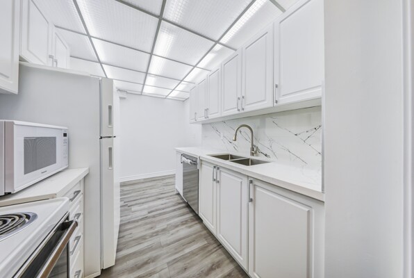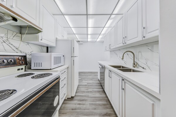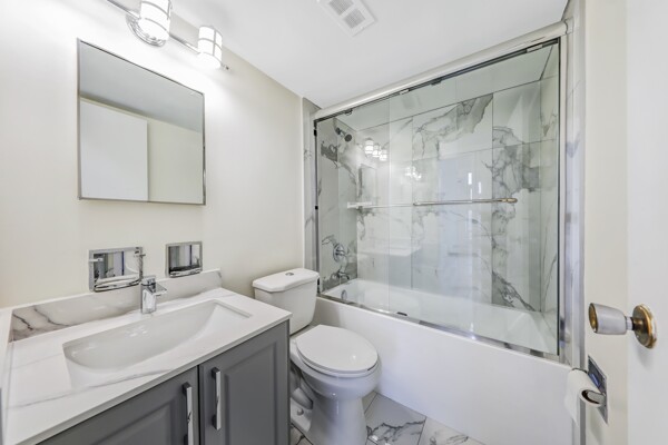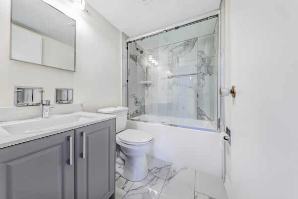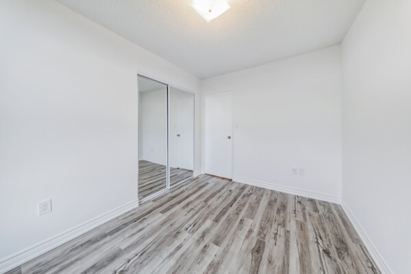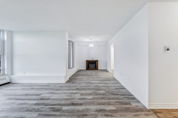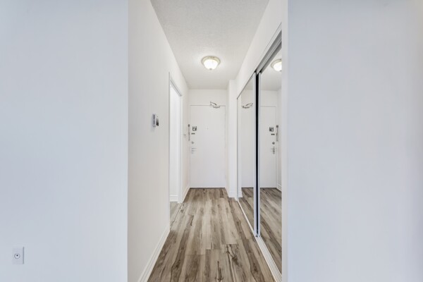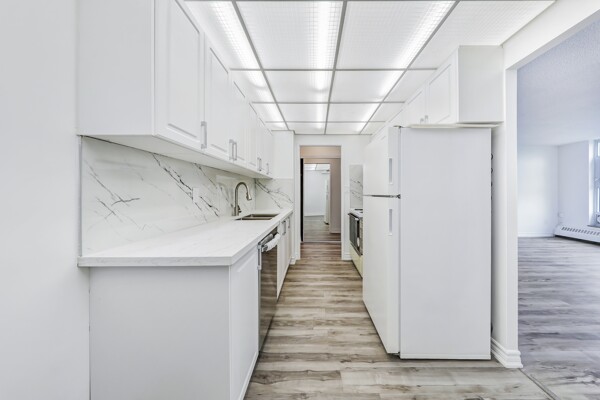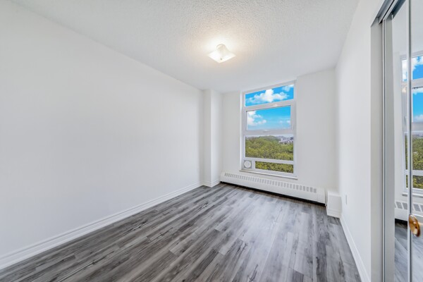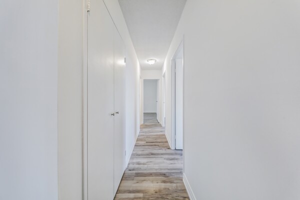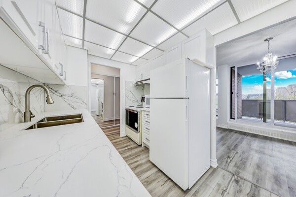 Attention First-Time Buyers & Investors! Spacious & bright 3-bedroom, with an unblocked, gorgeous forest view from the Living room. 1.5-bath corner unit featuring a full renovation with over $40K in upgrades! Enjoy a brand new white kitchen with quartz countertops, double sink, new faucets, backsplash, dishwasher, and 24x48 ceramic tiles. The unit boasts energy-efficient windows, updated ceiling light panels, freshly painted walls and ceilings throughout, brand new vinyl flooring, and new baseboards for a modern touch.Both bathrooms are updated with new toilets, vanities, faucets, mirrors, a tub/shower with marble-design tile surround, and a glass shower door in the main bath. Additional highlights include brand new sliding doors and mirrored closets in the entrance and all bedrooms. Quiet and serene environment. Conveniently located near schools, shopping, parks, and more. A must-see! ****Also investor's delight!!