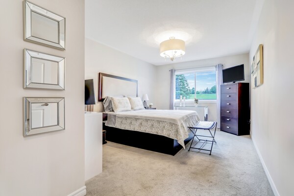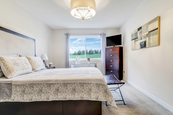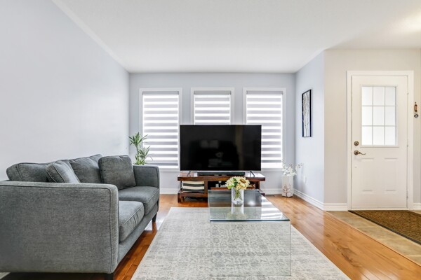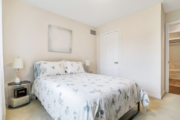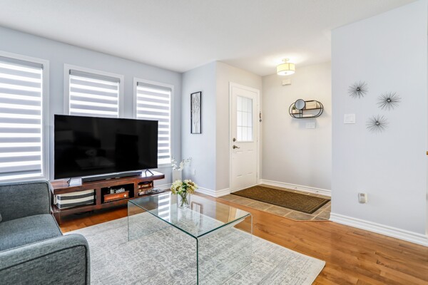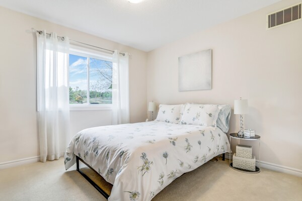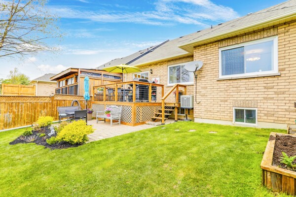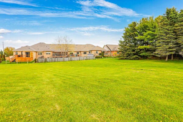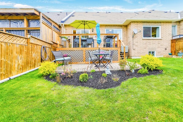 Pride of ownership radiates throughout this stunning Freehold Bungalow Town With Double Car Garage In Highly Sought After Butternut Village. Bright, Spacious And Functional Layout features Garage Access, Gleaming Hardwood Floors throughout the living area and cozy broadloom in both bedrooms. The Primary bedroom features a 4 piece Ensuite, and chef's Kitchen Features Granite Counters, Stainless Steel Appliances And Large Eat-In Breakfast Area featuring new doors and Overlooking a new deck and Private Rear Yard with no neighbours behind! Unspoiled basement awaits your personal touch! Perfect Home For those wishing to downsize or enjoy retirement and remain close to family and amenities without the compromise or maintenance fees of a condo. Close To Walking Trails, Parks And Shopping.