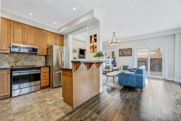 Luxury Townhome In The Most Prestigious Neighbourhood Of Summerhill. The End Unit Townhome On Extra Wide Lot. This Spacious, Clean & Well-Kept Townhouse Features 9 Ft Soaring Ceilings, Functional Open Concept Layout! Modern Kitchen With Quartz Counters, S/S Appliances, Breakfast Bar Area, Open Concept Living/Dining Room With Walkout To Large Wraparound Patio! Hardwood Flooring On Main & 2nd Floor With Oak Hardwood Staircase, W/New Carpet Stairs Runners, New Iron Pickets, Massive Primary Bedroom With Custom Built-In Shelving, 3Pc Ensuite, French Doors, & Walk-In Closet. Professionally Finished Lower Level Showcasing A Fireplace In A Stone Wall, Built-In Shelving, & Full 3Pc Bathroom. 3 Car Parking. Close To Top Rated Schools, Parks, Nature Trails, Shopping Centres, Restaurants, Public Transit And Major Highways. A Great Place You Can Call Home!